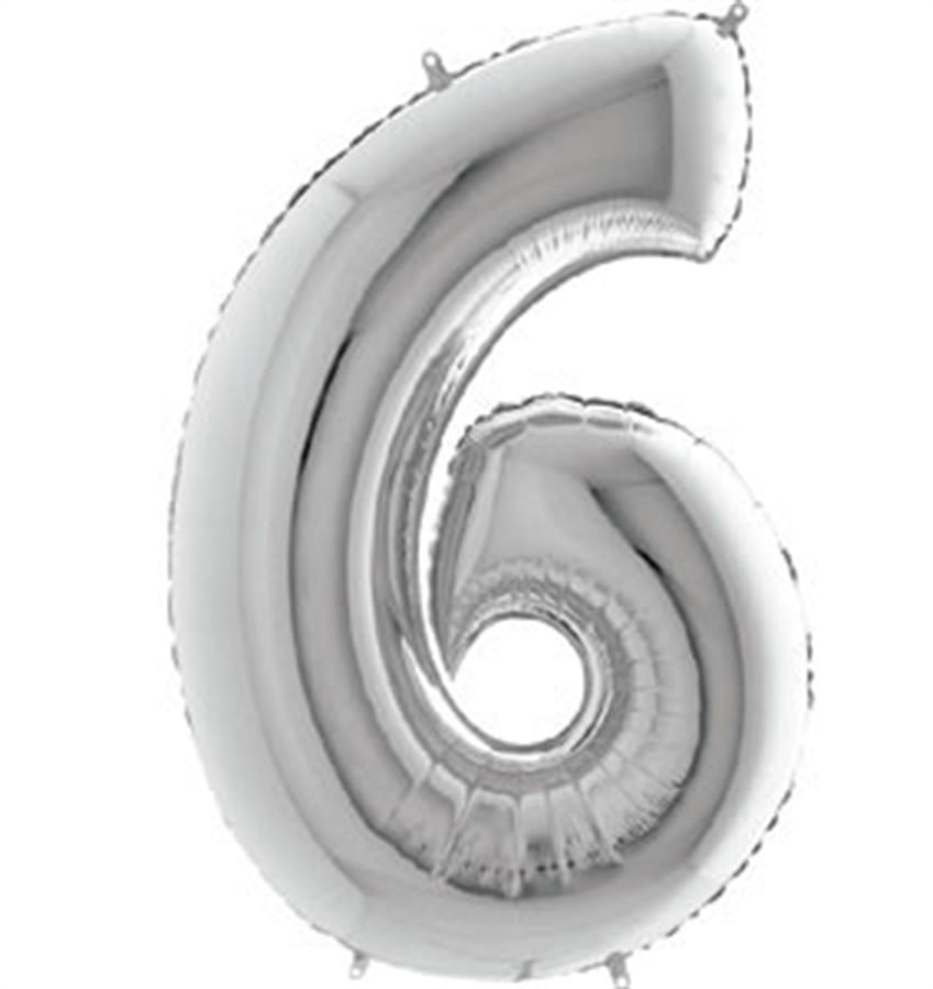 Complemente a decoração da sua festa com esse lindo Balão Metalizado Número 6 Prata 40''. Com cor prata e estampa número 6, esse balão tem dimensões de 101cm de altura e 67cm de largura, ou 40 polegadas. O tempo de flutuação do Balão é de 5 a 7 dias e sua composição é de plástico, garantindo mais durabilidade durante a festa.