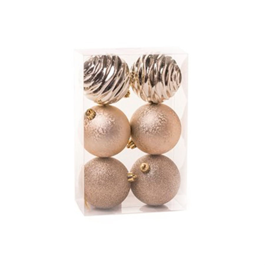 Cromus - Bolas Natalinas, 8cm, de Plástico, com Acabamentos Glitter, Texturizado e Onda, na Cor Rosê em Caixa de Pvc .