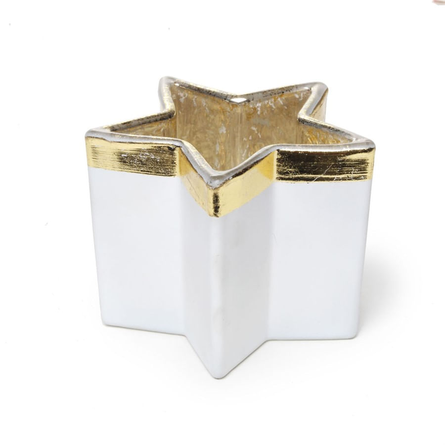 Luz de velas são excelentes para criar atmosferas aconchegantes e confortáveis, ficam perfeitas em qualquer ambiente além de serem ótimas opções para presentear. Os Castiçais de Vidro Estrela Branca com Borda Ouro Tamanho G da Festas da 25 são ideais para quem busca elegância e sofisticação na decoração. Composto por 100% vidro de alta qualidade, este produto possui dimensões de 15cm de altura, 15cm de largura e 10cm de comprimento. São duas unidades que vão deixar a decoração da sua festa ainda mais bonita e aconchegante. Ideal para utilizar em mesas de jantar, aparadores e em espaços onde é necessário criar um clima acolhedor. A limpeza deste produto é fácil e prática, basta utilizar um pano macio levemente umedecido com água.