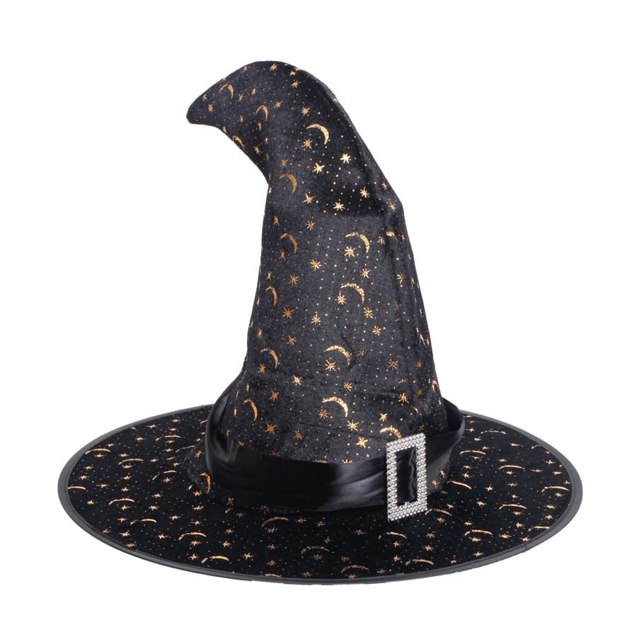 Garanta agora o Chapéu Bruxa Cinto com Lua Preto e Ouro 35X35X35 da Cromus e faça do seu Halloween uma experiência assustadoramente linda!