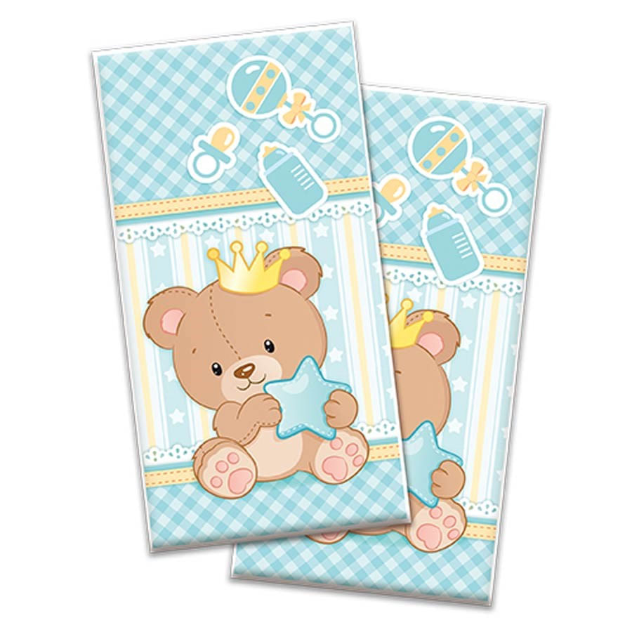 Sacola Plástica Baby Ursinho Menino. Ideal para colocar suas lembrancinhas, utilizar na decoração da mesa principal e distribuir entre os seus convidados.