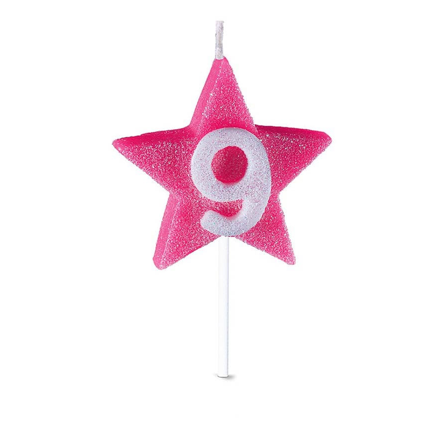Vela Estrela Rosa nº 9 para tornar o momento do parabéns único com a vela combinando com o tema da festa.