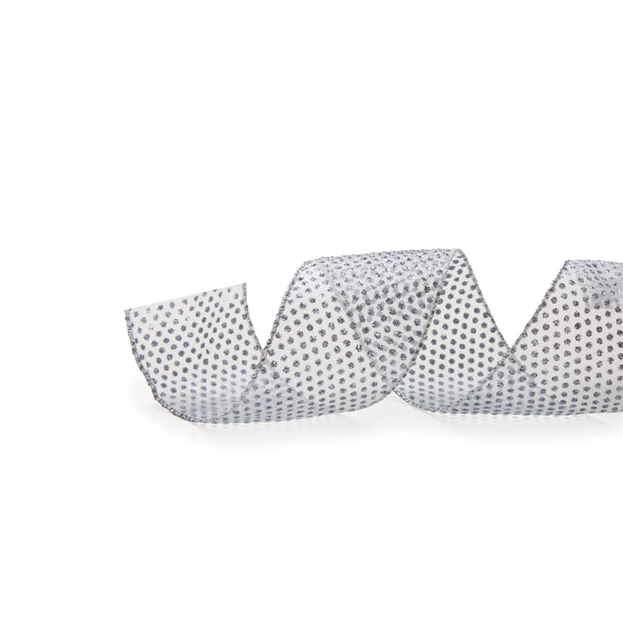 Cromus - Fita de Organza Marfim com Poa de Glitter Prata