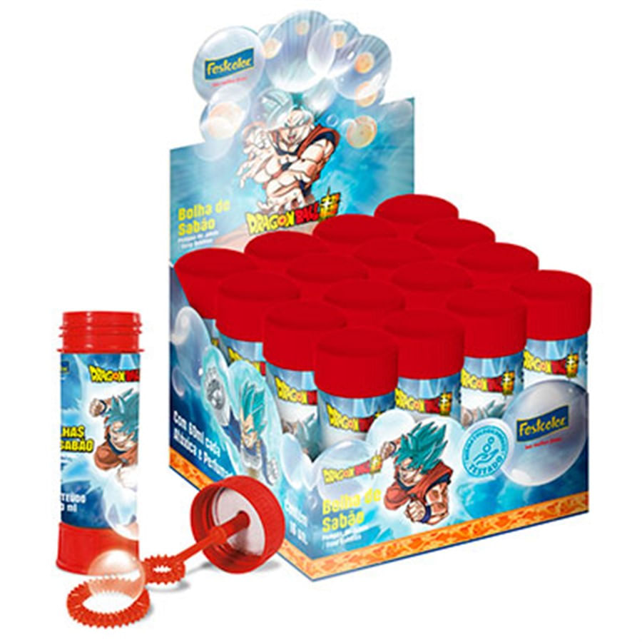 Adicione ainda mais diversão à celebração do aniversário do seu filho com as bolinhas de sabão do tema Dragon Ball. O tubinho com capacidade para 60ml vem em um design temático e possui uma tampa com arco para fazer muitas bolhas.