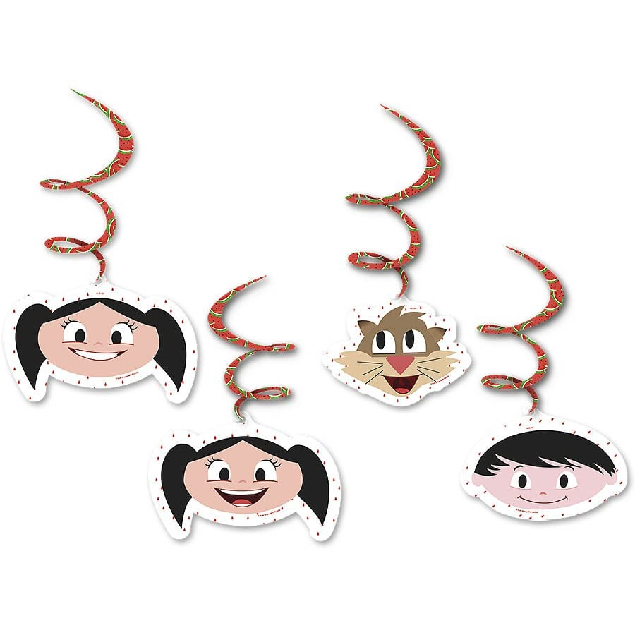 Destaque sua decoração com o Móbile Espiral Cartonado Show da Luna Melancia. Ideal para pendurar no teto, principalmente junto da mesa do bolo, o móbile é uma verdadeira atração para as crianças e adultos que curtem a Luna e sua turma. Os elementos decorativos são feitos em cartão triplex, garantindo alta qualidade e resistência para a sua comemoração. A embalagem contém 4 unidades, já montadas e prontas para o uso.