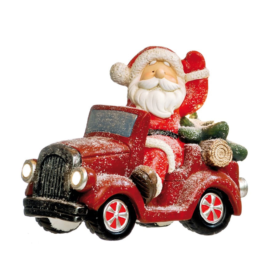 Este Papai Noel no Carro, Levando Árvore com Led é a escolha perfeita para quem deseja decorar a área externa e o jardim de sua casa com itens temáticos para o Natal. Produzido em magnésia, o produto possui 35cm de altura, 40cm de largura e 20cm de comprimento, apresentando um acabamento delicado e bonito.