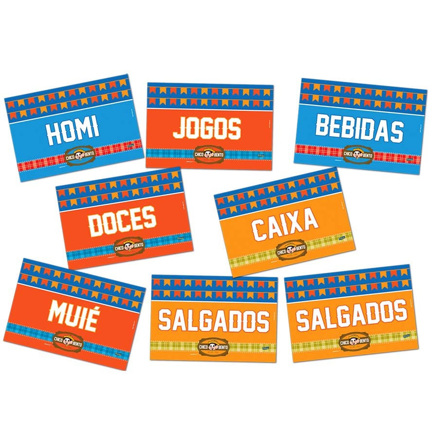 Kit com plaquinhas informativas, impressa em papel cartão de alta qualidade, ideal para utilizar na identificação das mesas e barracas.