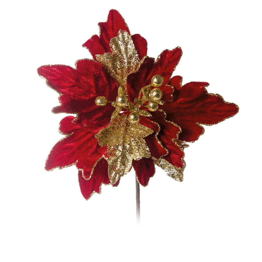 Cromus - Poinsetia Folhas Mistas Vermelhas e Ouro com Glitter