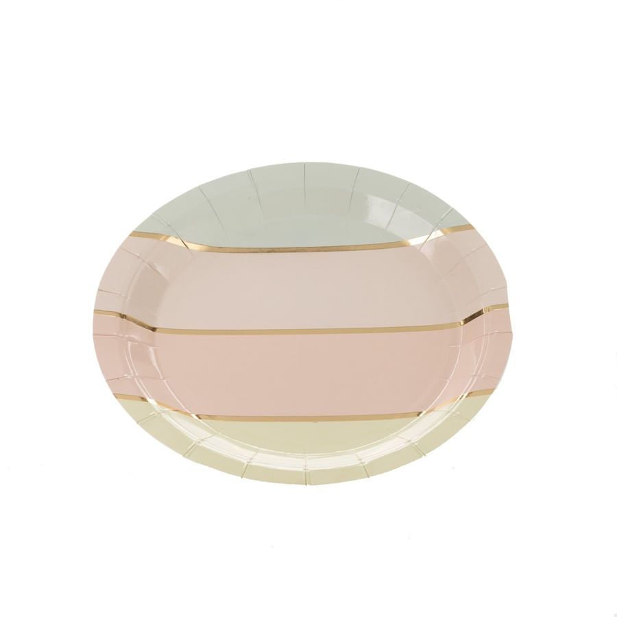 Utilize os Pratos de Papel Listras Degrade C/ Dourado em festas temáticas, como aniversários, casamentos, chás de bebê e confraternizações.