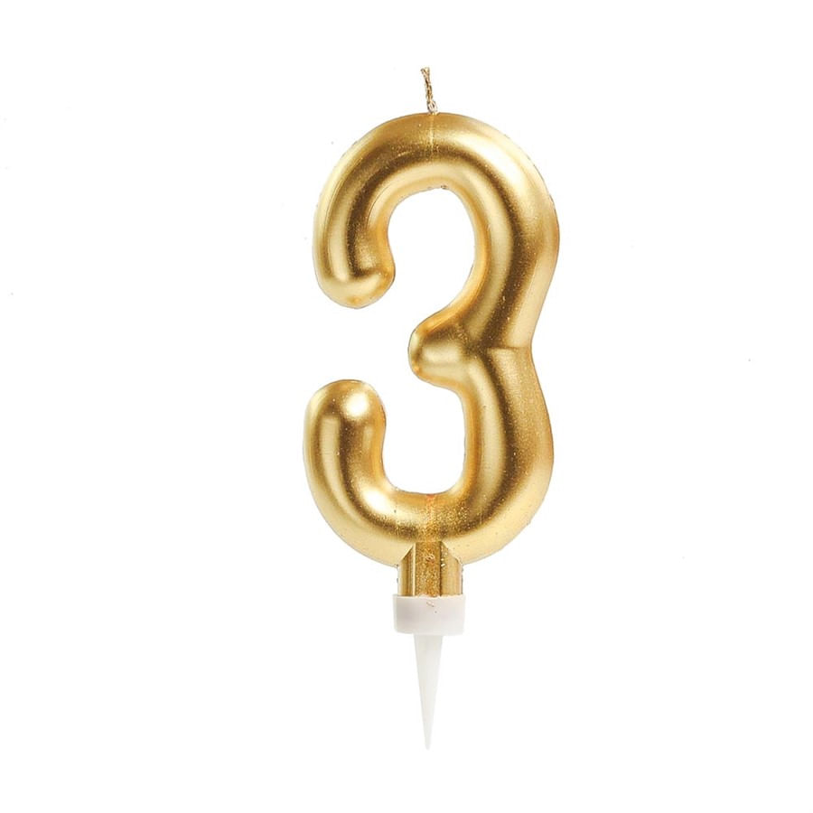 Deixe sua festa ainda mais especial com a Vela n° 3 Arredondado Metalizado Ouro. Feita de parafina e plástico, é resistente e tem um brilho metalizado que combina com diversos temas e decorações.