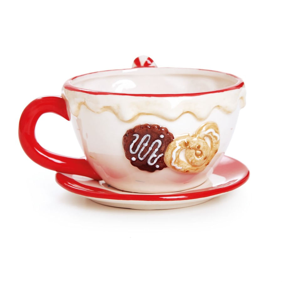 A Xícara e Pires Candy Cane Vermelho e Branco é ideal para deixar sua mesa ainda mais temática e divertida. Cada pacote contém 4 unidades, todas produzidas em cerâmica e com garantia de 3 meses.