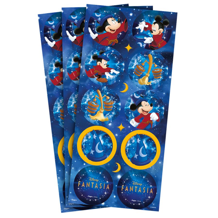 - Cole os adesivos nos objetos decorativos da festa, como latas, tubetes, copinhos de brigadeiro, caixinhas e sacolinhas de lembrancinhas, para deixá-los personalizados com o tema Mickey Fantasia.