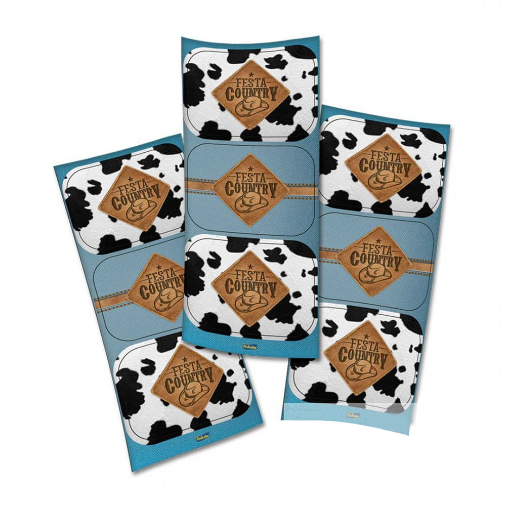 Adesivo retangular para decoração de Festa Country, em três cartelas. Suas medidas aproximadas são altura de 6,5 cm e largura de 9 cm. Compre agora e deixe sua festa ainda mais personalizada com esse adesivo temático.