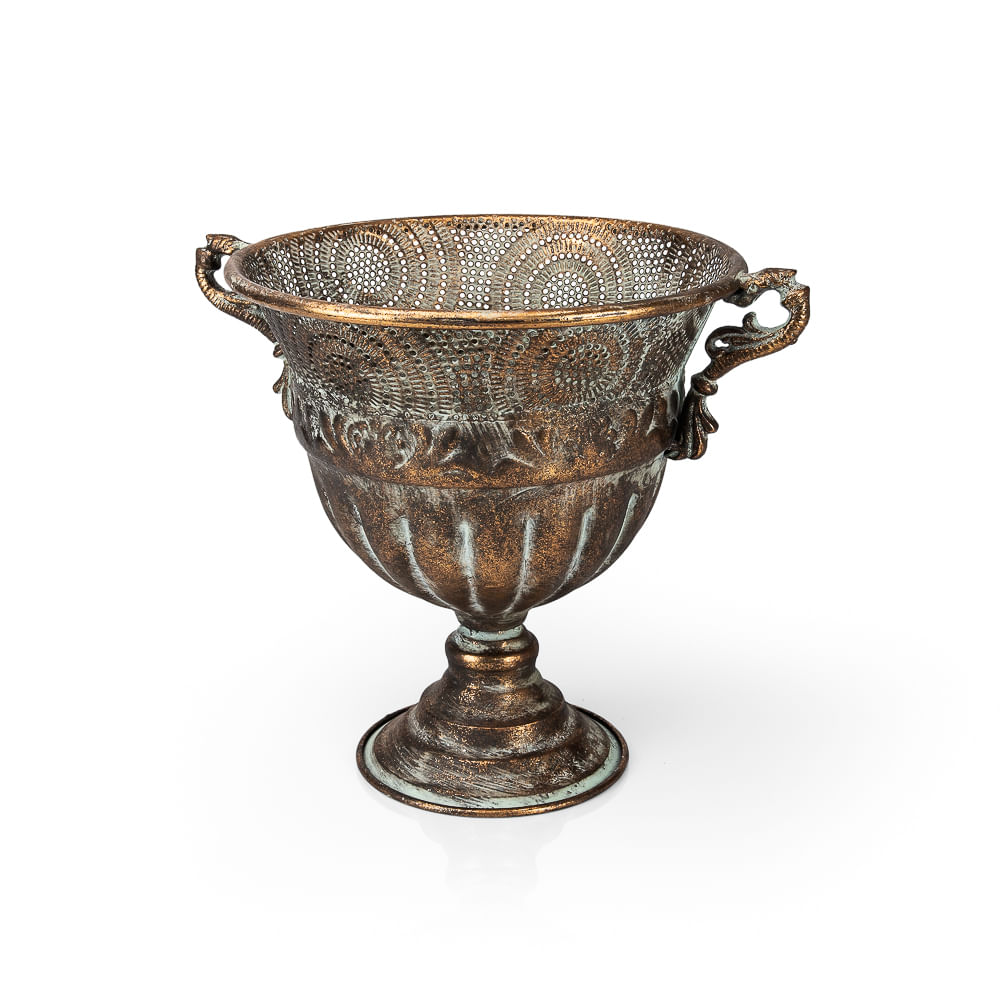 Compre Ânfora Telada Metal Gold para a Decoração da Festa, Decoração de casa, Decoração de escritório e até mesmo Decoração de Jardim, pois elas se encaixam tanto em cômodos das áreas internas quanto ambientes externos.