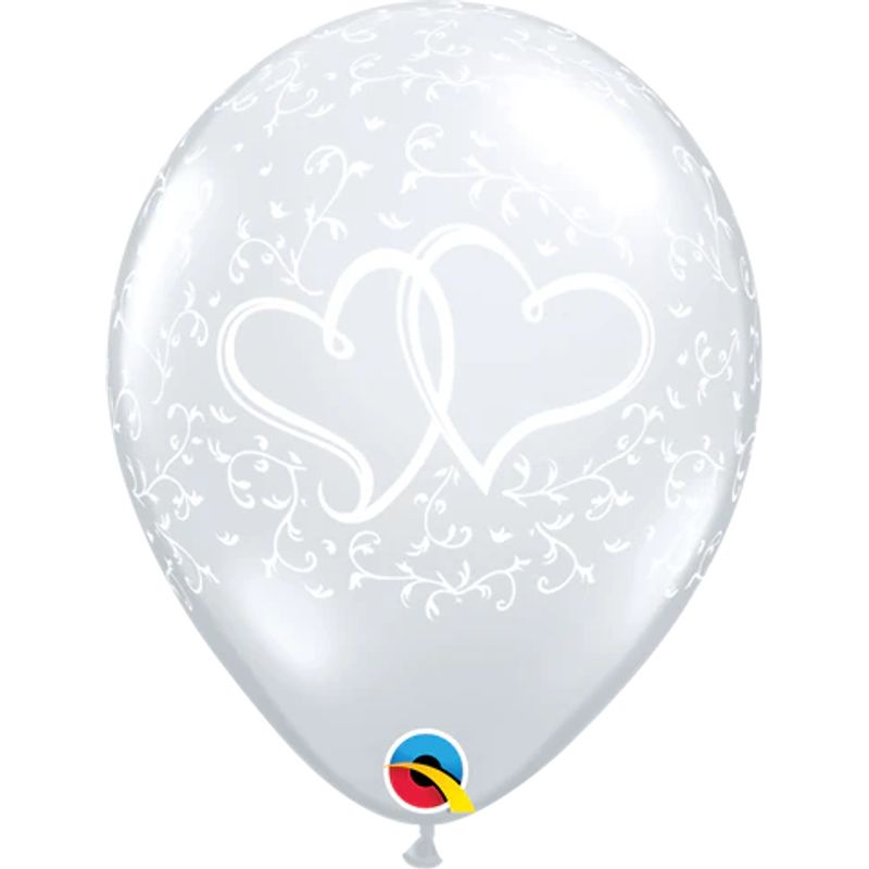 O Balão Qualatex 11" é o item ideal para adicionar um toque especial em sua festa ou evento. Com um design elegante de corações entrelaçados em formato diamante transparente, esses balões são capazes de transformar qualquer ambiente de forma romântica e encantadora.