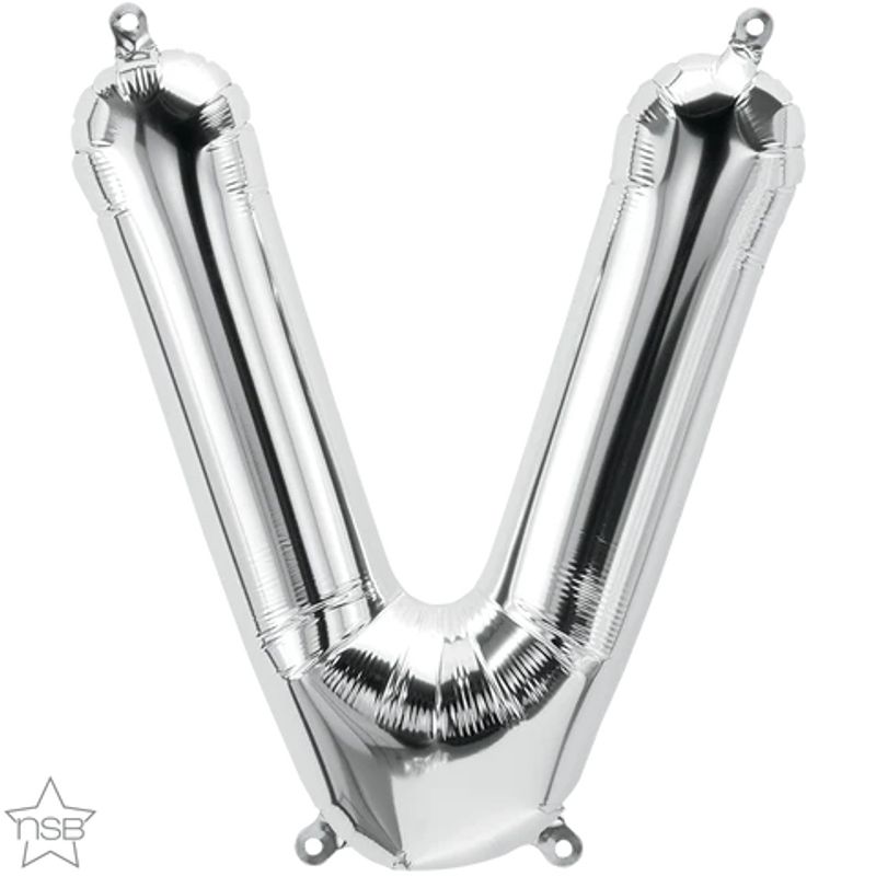 Com o Balão Qualatex 16" - Letra - V Prata, sua festa será inesquecível. Adquira já o seu e surpreenda seus convidados com uma decoração única e cheia de estilo.