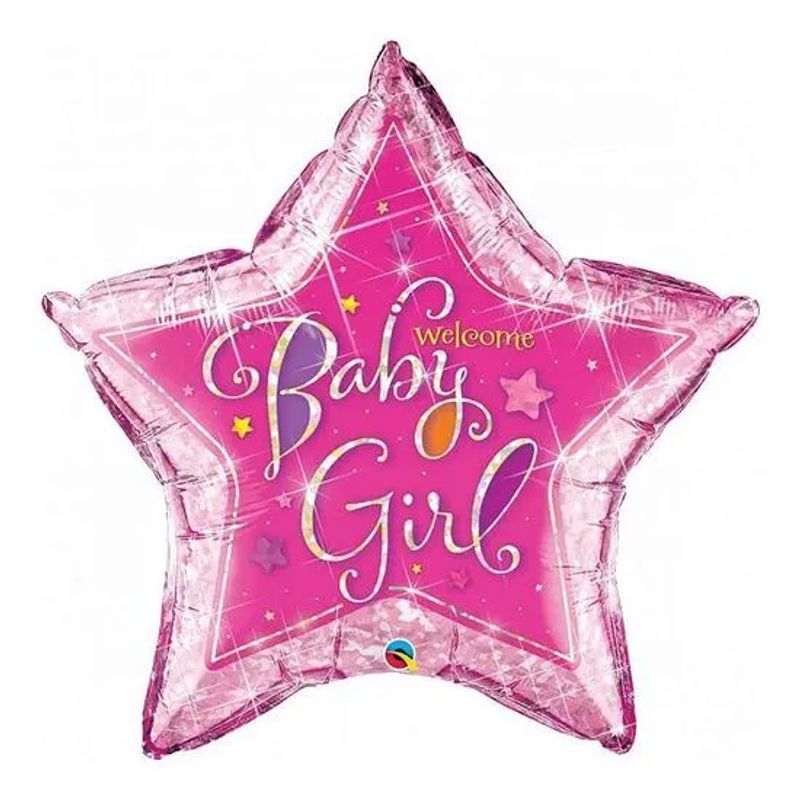O Balão Qualatex 36" - Estrela Hol - Welcome Baby Girl-Estrelas é a escolha perfeita para quem busca um toque especial e elegante em festas e eventos. Com a Qualatex, conhecida por sua qualidade e originalidade, este balão se destaca por sua durabilidade e resistência.