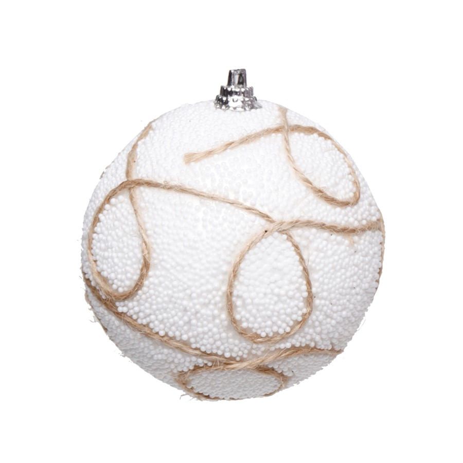 Compre agora a Bola de Natal Nevada com Juta Branco 8cm - 6 Peças e deixe sua decoração natalina ainda mais especial e encantadora!