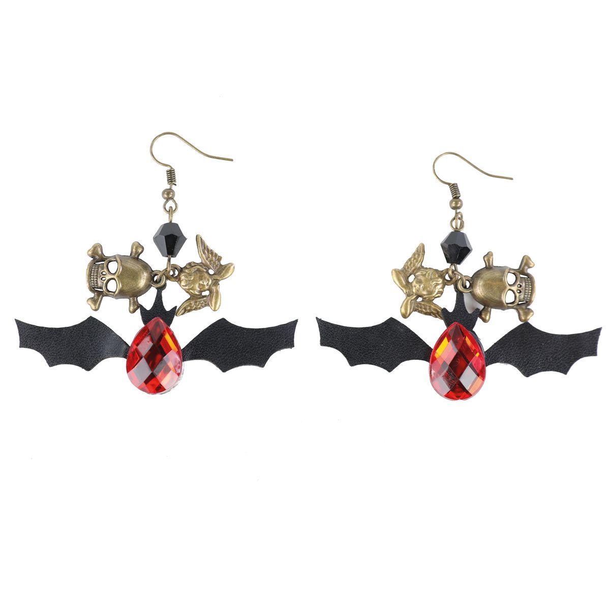 Utilize o Brinco Caveira Morcego Preto/Vermelho para compor looks noturnos e misteriosos.