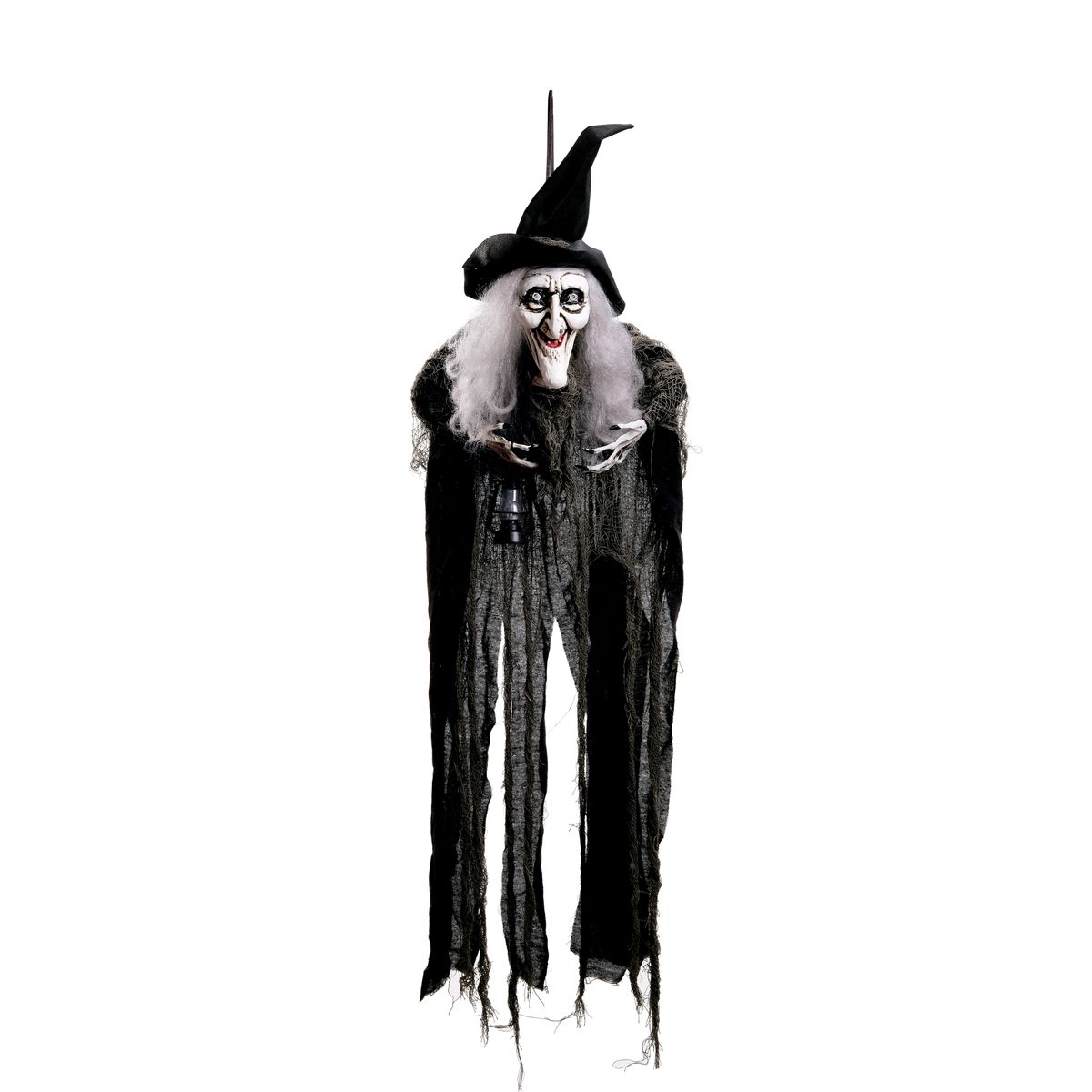 Além disso, você pode personalizá-la de acordo com sua preferência. Que tal colocar uma lanterna na mão da bruxa para criar um efeito luminoso assustador? Solte sua criatividade e surpreenda seus convidados com uma decoração de Halloween única e memorável.