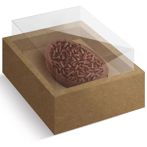 Uma caixa de papel kraft resistente, ideal para embalagem de um meio ovo, perfeita para um aspecto rústico e natural.