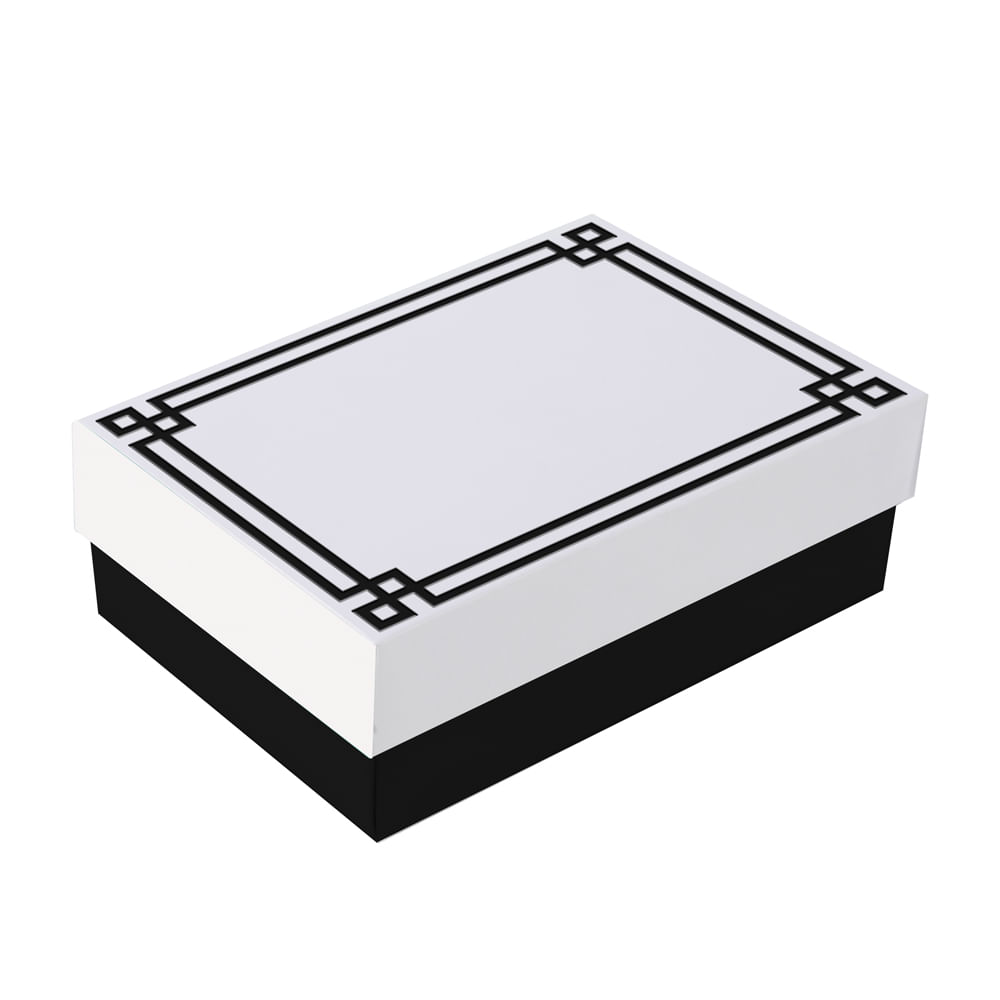 Adquira já a Caixa Retangular com Tampa Petit com Relevo Domo Preto e Branco M e deixe sua festa ainda mais especial. A caixa é feita de papel cartão e possui medidas aproximadas de altura: 6,5cm, largura:14,5cm e comprimento: 19,5cm, além de ser vendida em pacotes com 1 unidade.