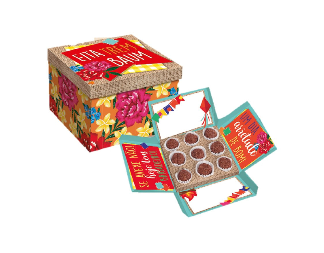 Caixa Surpresa Arraiá Composê 13,7x13,7x10 - 1 Un