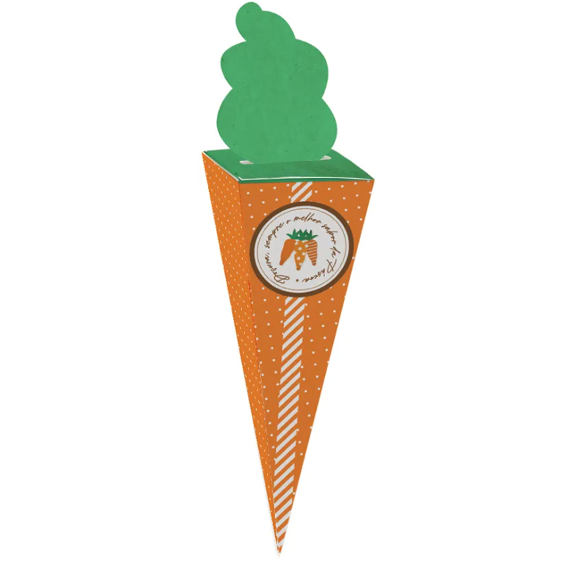 A Caixa Surpresa Cenoura Fresh é uma encantadora opção de embalagem para suas festas! Com um design lúdico e divertido, essas caixinhas em formato de cenoura são perfeitas para lembrancinhas ou doces, trazendo um toque especial ao seu evento.
