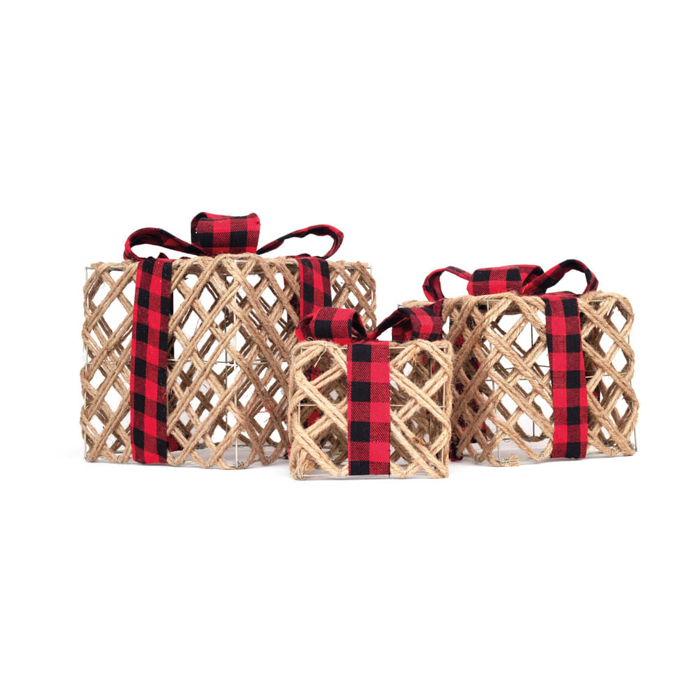 Com as Caixas Presentes com Laço Xadrez Nude M e G do Festas da 25 você irá presentear com muito mais elegância, sofisticação e praticidade. São produzidas com 90% de juta e 10% de tecido, o que garante uma maior resistência para o transporte e um aspecto rústico encantador.