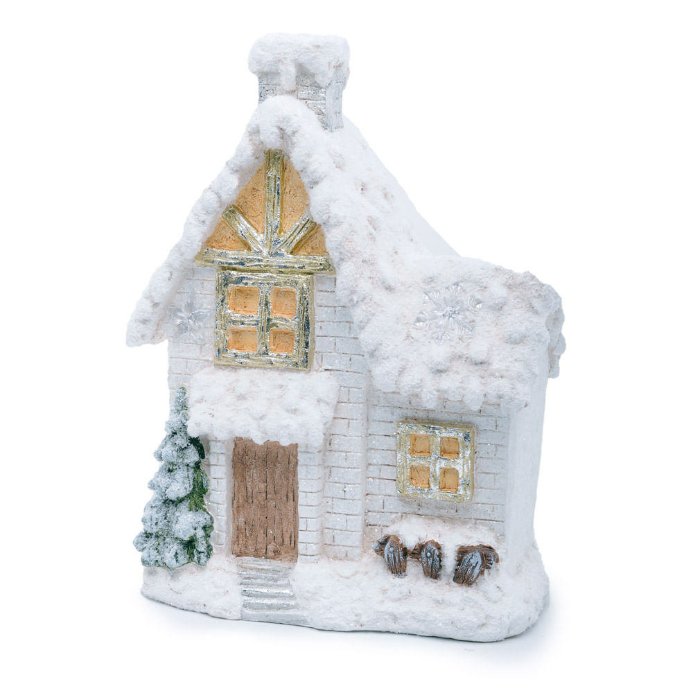 A Casinha com Led Pinheiro Marfim G é o item de decoração que faltava para a sua casa neste Natal. Com 44cm de altura, 32cm de largura e 19cm de comprimento, ela é produzida com 95% de Magnésio e 5% de Fibra de Vidro, garantindo durabilidade e resistência. O produto é acompanhado por 3 pilhas AAA e conta com iluminação com luz de Led. Além disso, seu design elegante e delicado combina com qualquer decoração de Natal ou festa temática.