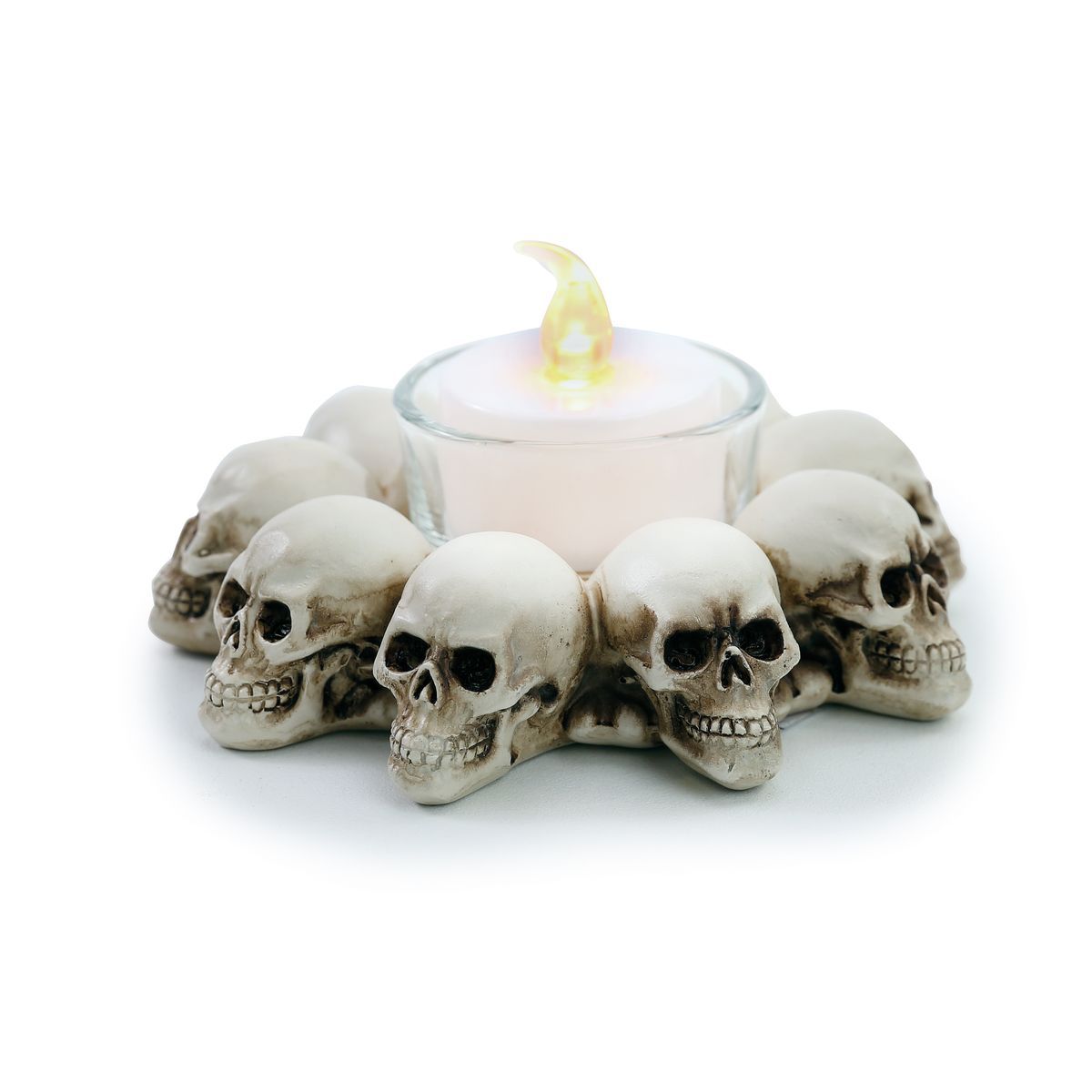 O Castiçal Decorativo Caveiras para Decoração de Halloween da Cromus é o item perfeito para adicionar um toque assustador e divertido à sua decoração de Halloween. Com seu design único de caveiras, este castiçal vai surpreender e encantar seus convidados.
