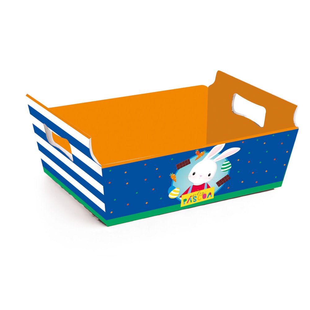 A Cesta de Cartão Brilho de Páscoa P 18X13X7,5 é perfeita para presentear crianças e adultos na época da Páscoa.