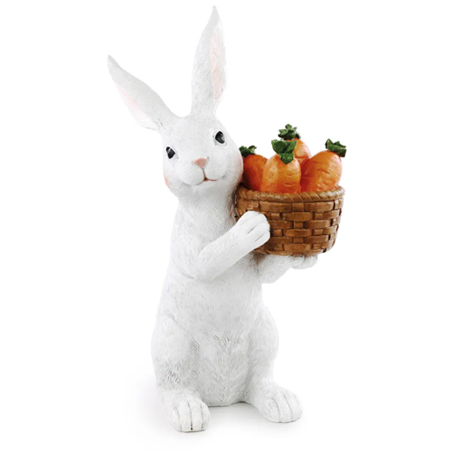 O Coelho Decorativo de Resina com Cesta de Cenouras Flower é uma adição adorável que certamente trará sorrisos e alegria à sua decoração!