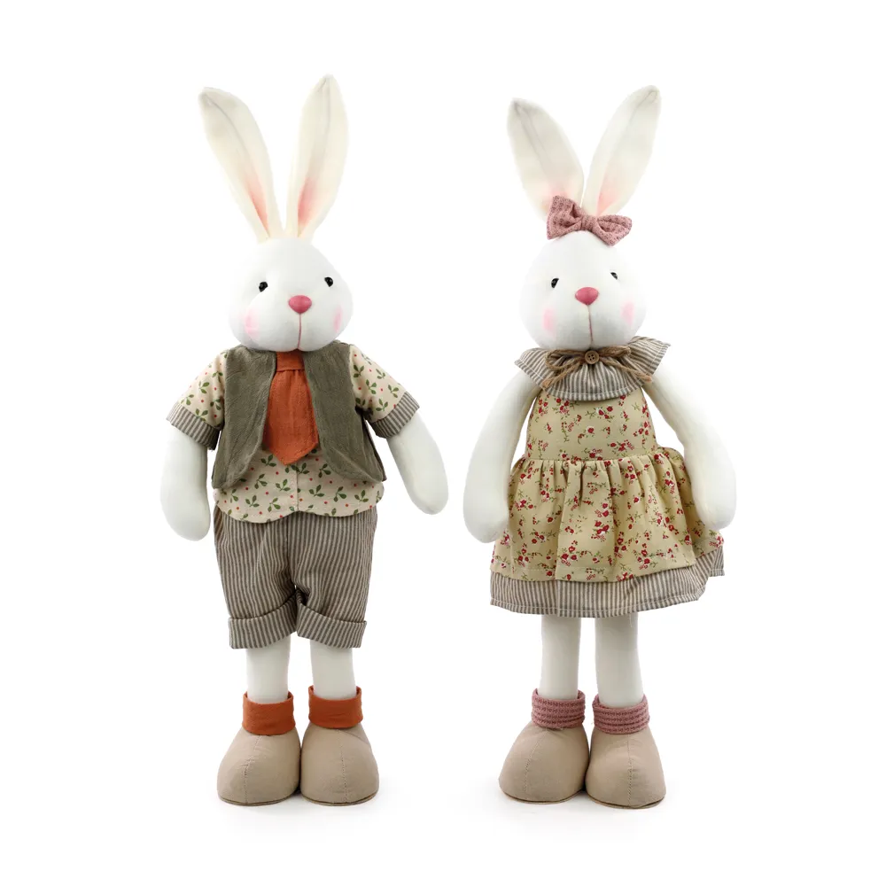 Coelho em tecido com estampa floral e tamanho grande, ideal para dar vida à sua decoração.