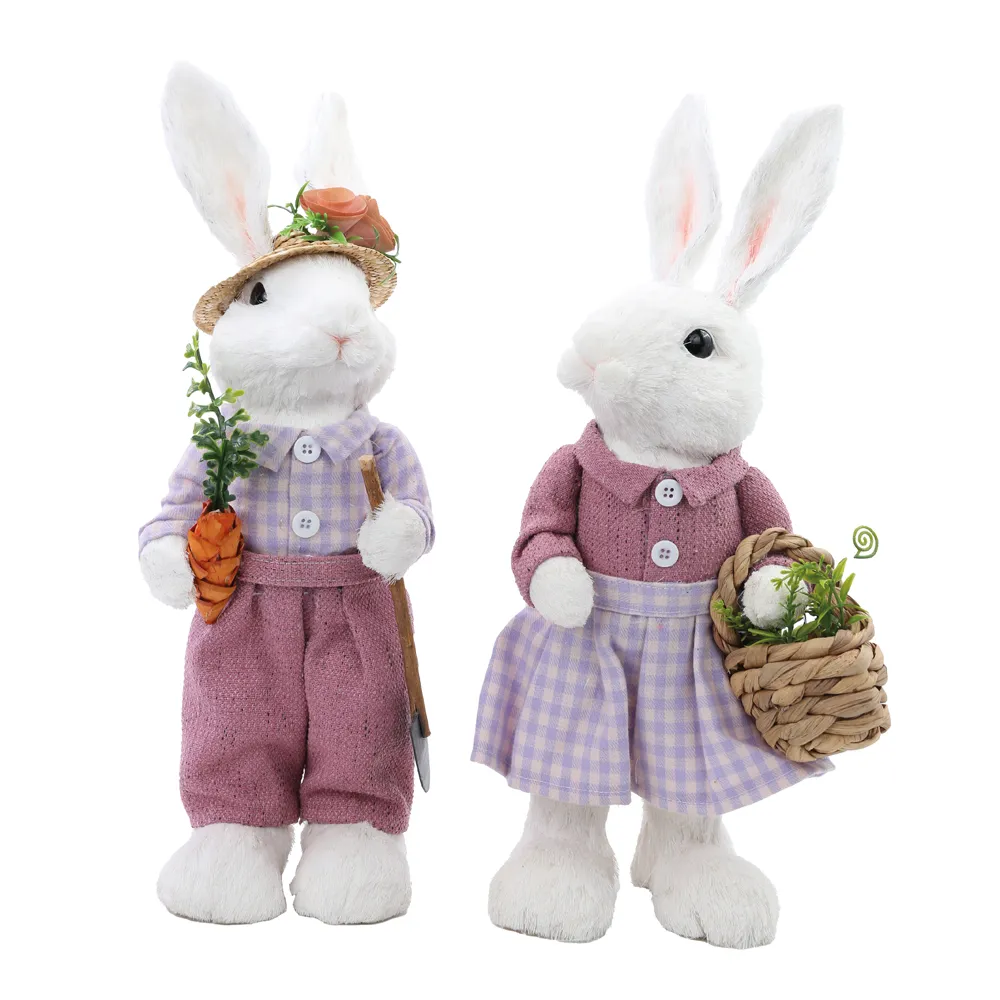 Coelho em tecido com detalhes variados, perfeito para uma decoração descontraída e divertida.