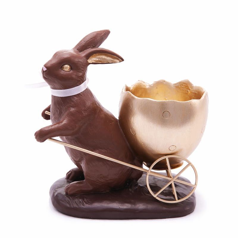 Encante sua decoração de Páscoa com o Coelho Decorativo Resina Puxando Carrinho