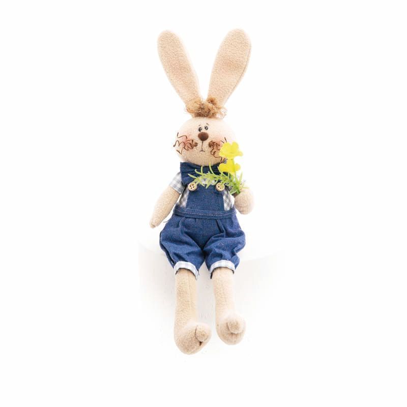 O Coelho Sentado com Jardineira e Gravata Borboleta Azul Segurando Flores - Cromus é a escolha perfeita para deixar sua decoração de Páscoa ainda mais especial. Garanta já o seu e encante todos com esse adorável coelhinho!