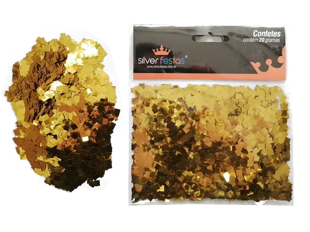 Deixe sua festa ainda mais brilhante e sofisticada com os Confetes 20g Mini Quadrado Dourado da linha L Confete. As peças possuem medidas ideais: