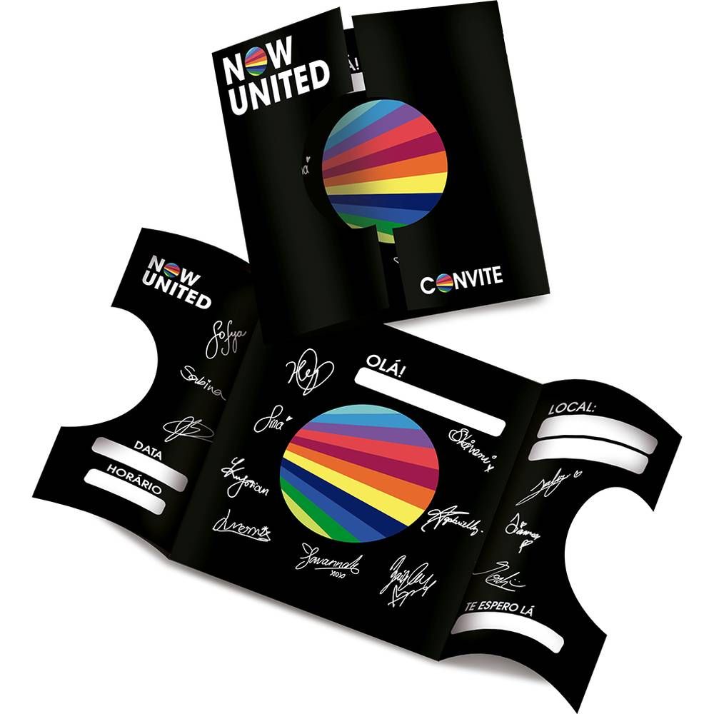 - Design exclusivo: O convite possui uma arte personalizada, que retrata a energia e alegria do grupo Now United. Perfeito para os fãs da banda.