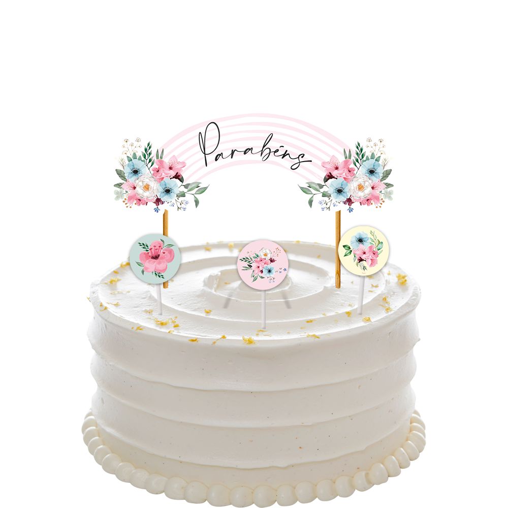 São muitas opções de decoração, com flores, folhas e galhos que irão proporcionar uma festa repleta de vida e vibração. Com este pacote com 4 unidades da decoração de bolo Festa Floral, você poderá soltar a imaginação e criar uma decoração incrível de forma prática e fácil.