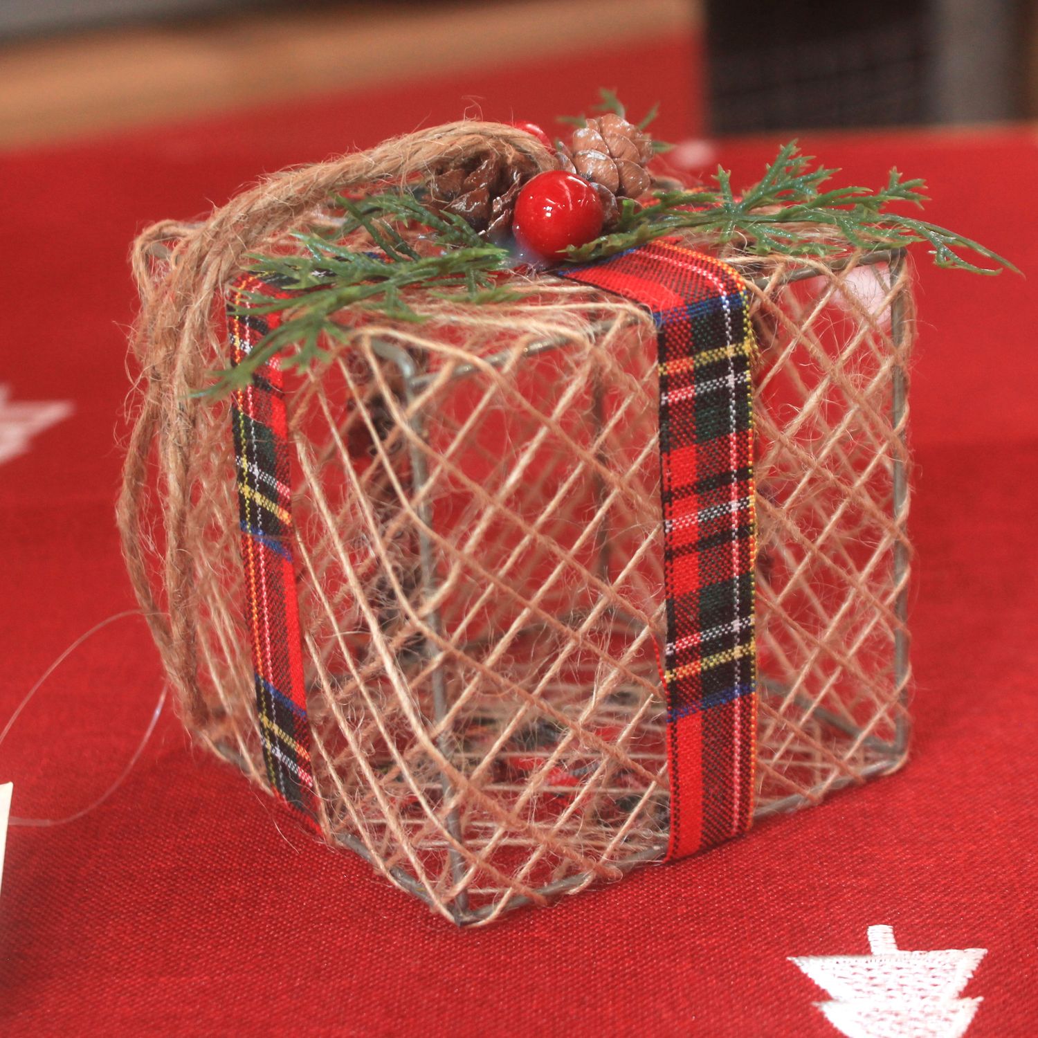 Adquira agora mesmo o Enfeite Caixa Presente Sisal Fita Xadrez Bege e Vermelho e Preto da Cromus e transforme a decoração de suas festas e presentes em momentos inesquecíveis.