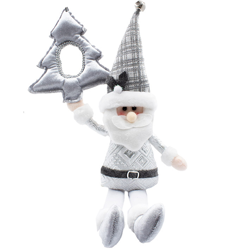 Enfeite Papai Noel em Tecido Luxo 50x10cm Prata - 1 Un