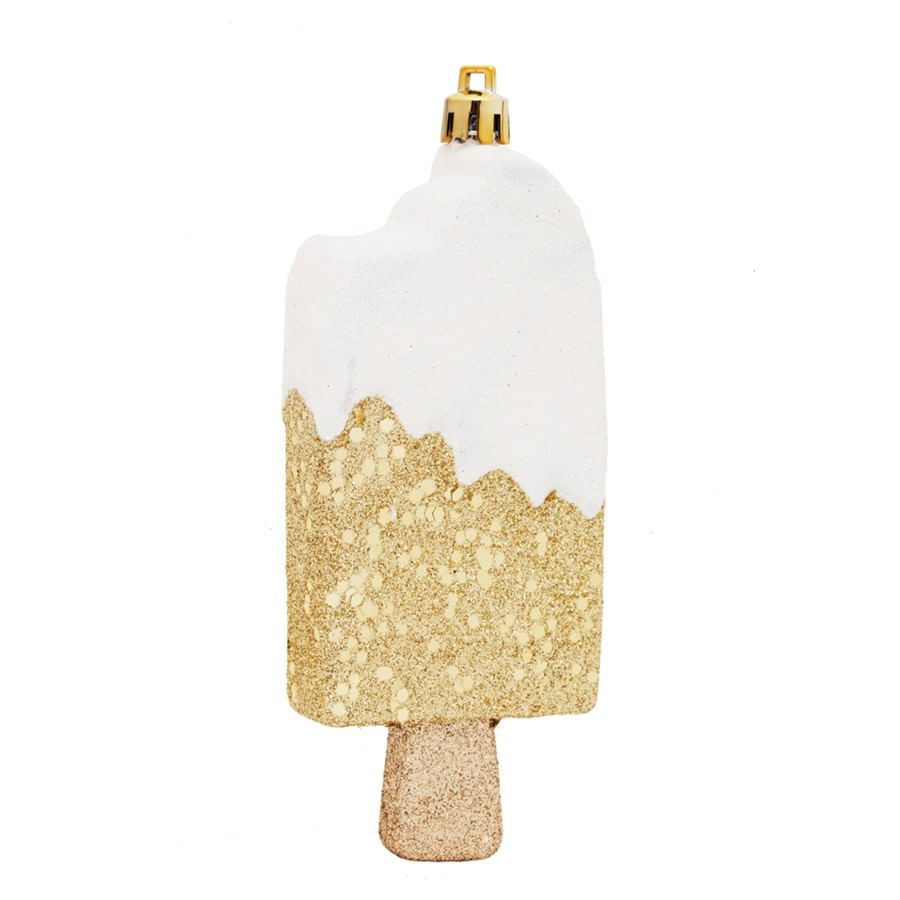 Design exclusivo: O enfeite em formato de picolé dourado e branco é uma opção original e criativa para decorar festas temáticas, como festas na piscina, verão e sorvetes.