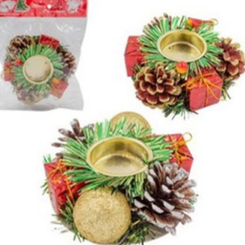 Enfeite Porta Vela Candelabro Natalino 12cm - 1 Un