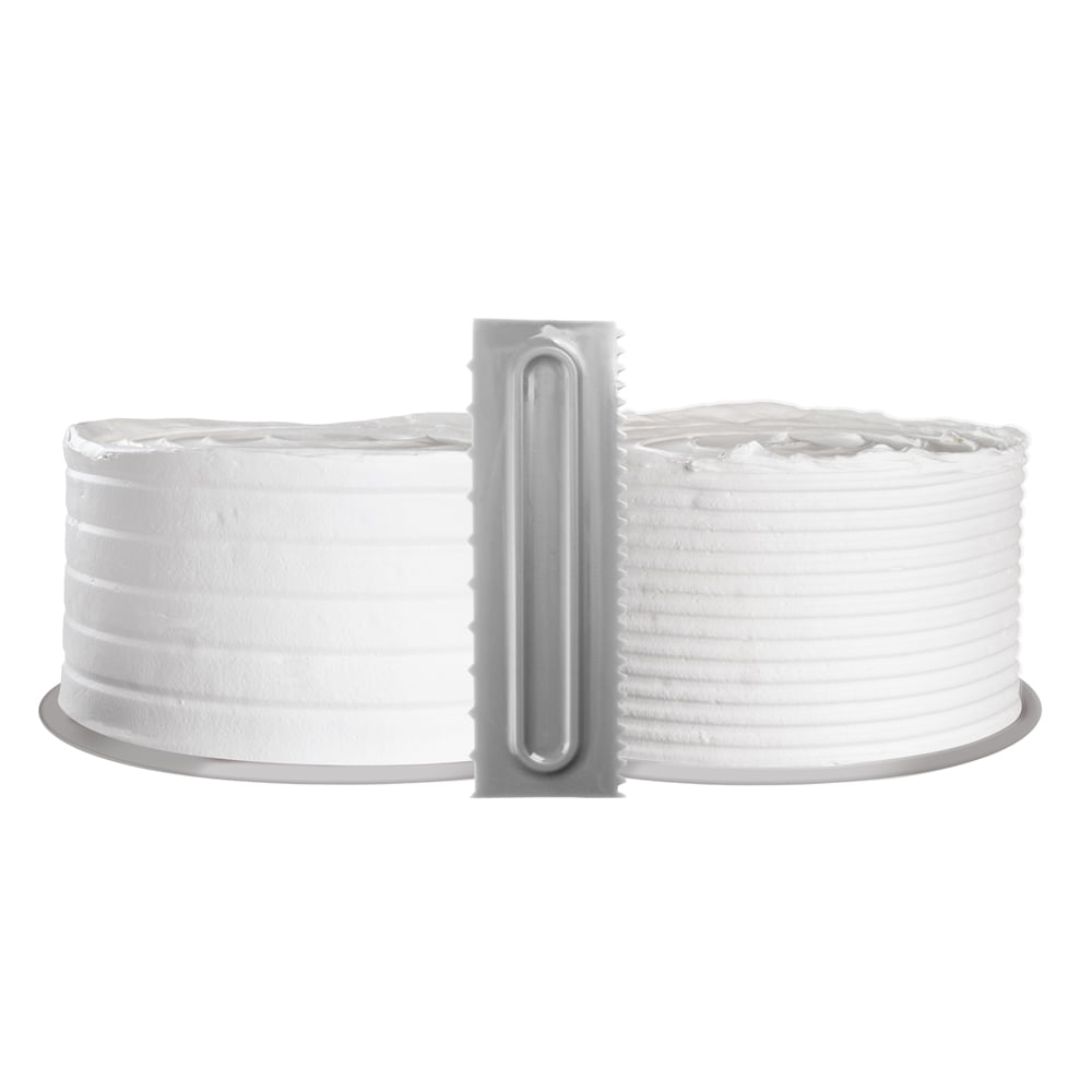 Resistente, não deforma e produz a decoração de forma homogênea em toda circunferência do bolo. Com duas texturas diferentes na mesma ferramenta , cada lado da espátula produz uma decoração diferente e sofisticada.