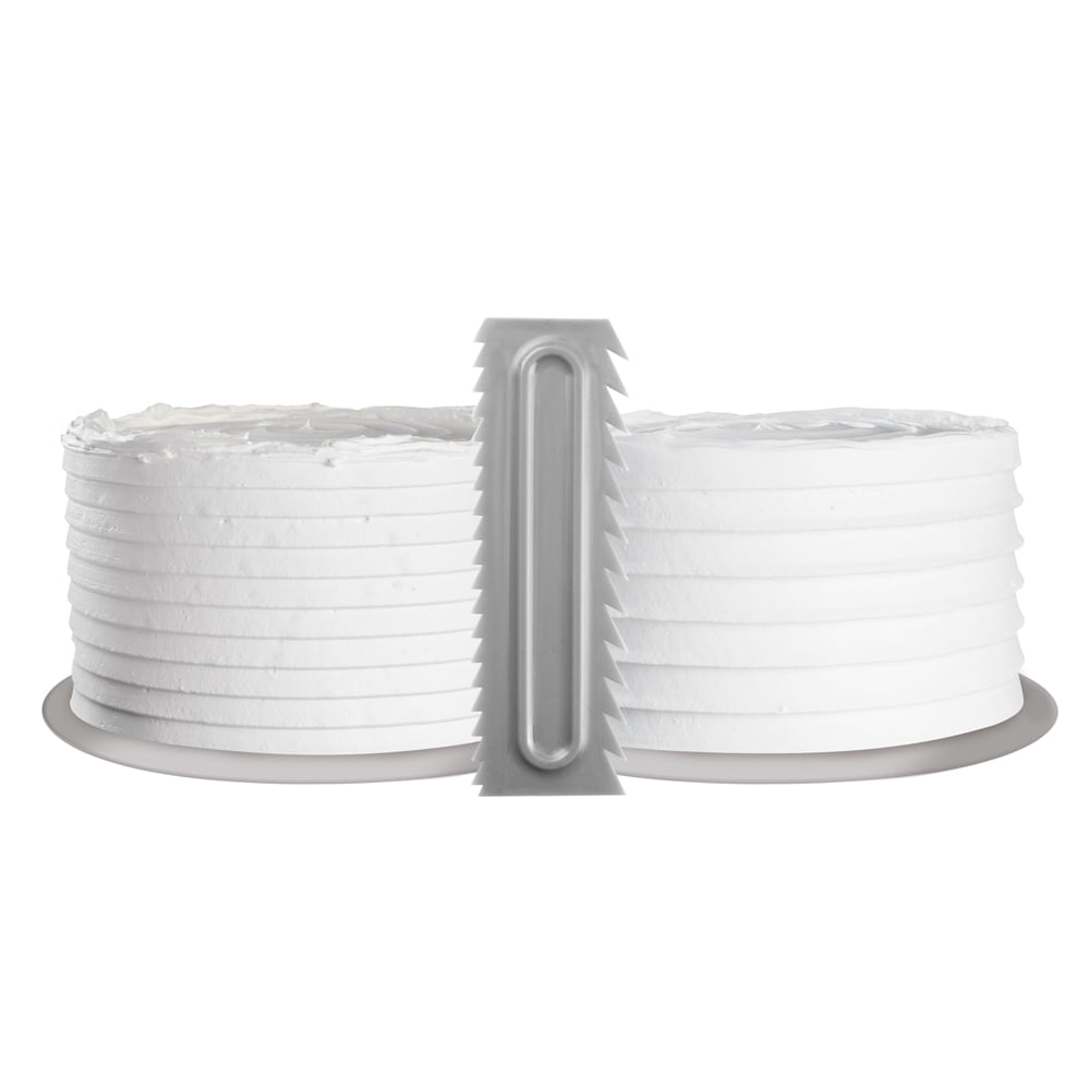 Com a espátula decorativa 2 em 1 plástico número 7 da Festas da 25, você terá um utensílio versátil para decoração de seus bolos. Resistente, a espátula não deforma e produz a decoração de forma homogênea em toda circunferência do bolo. Com duas texturas diferentes na mesma ferramenta, cada lado da espátula produz uma decoração diferente e sofisticada.