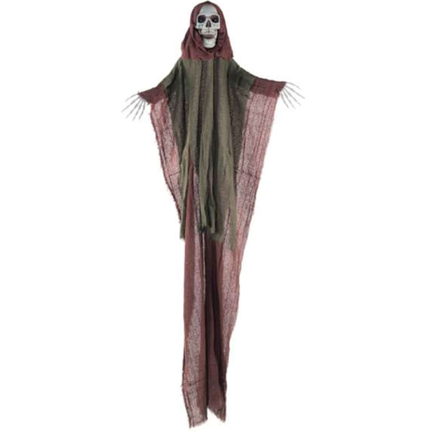 Som e Luz: Este esqueleto emite sons arrepiantes e conta com uma iluminação especial que cria uma atmosfera sinistra e envolvente.