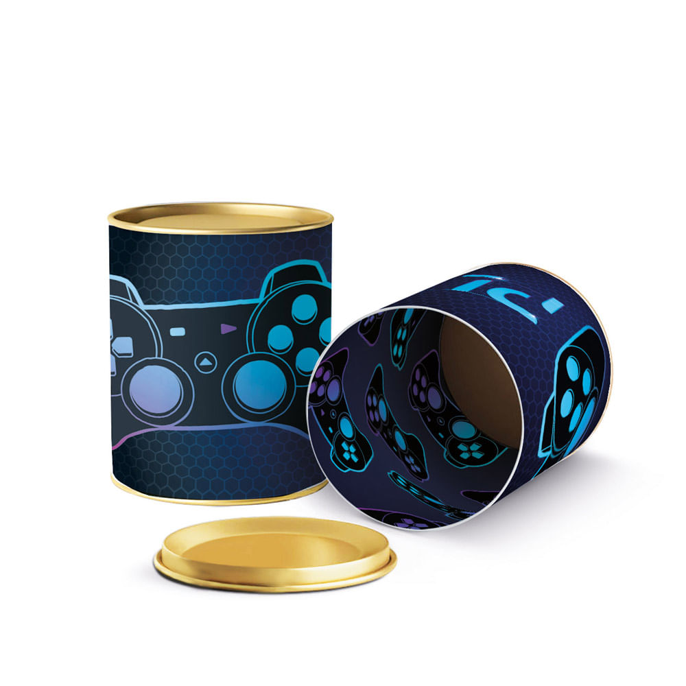 A Lata para Lembrancinhas Gamer é perfeita para guardar pequenos itens, além de ser uma excelente opção para presentear os seus convidados. Com 11 cm de altura, a lata é produzida em Bopp, Cartão, Metal e Pigmento Claro, garantindo resistência e durabilidade.