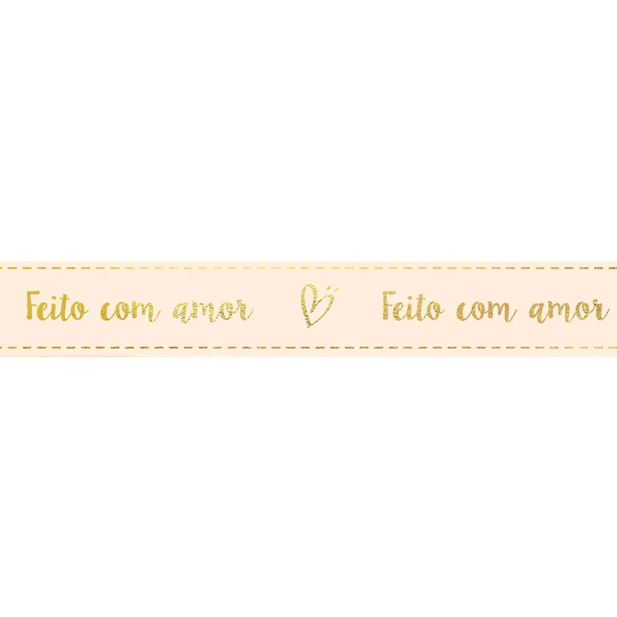 Fita Decorativa Cetim Estampado Feito Com Amor 15mmx30m Pérola - 1 Un