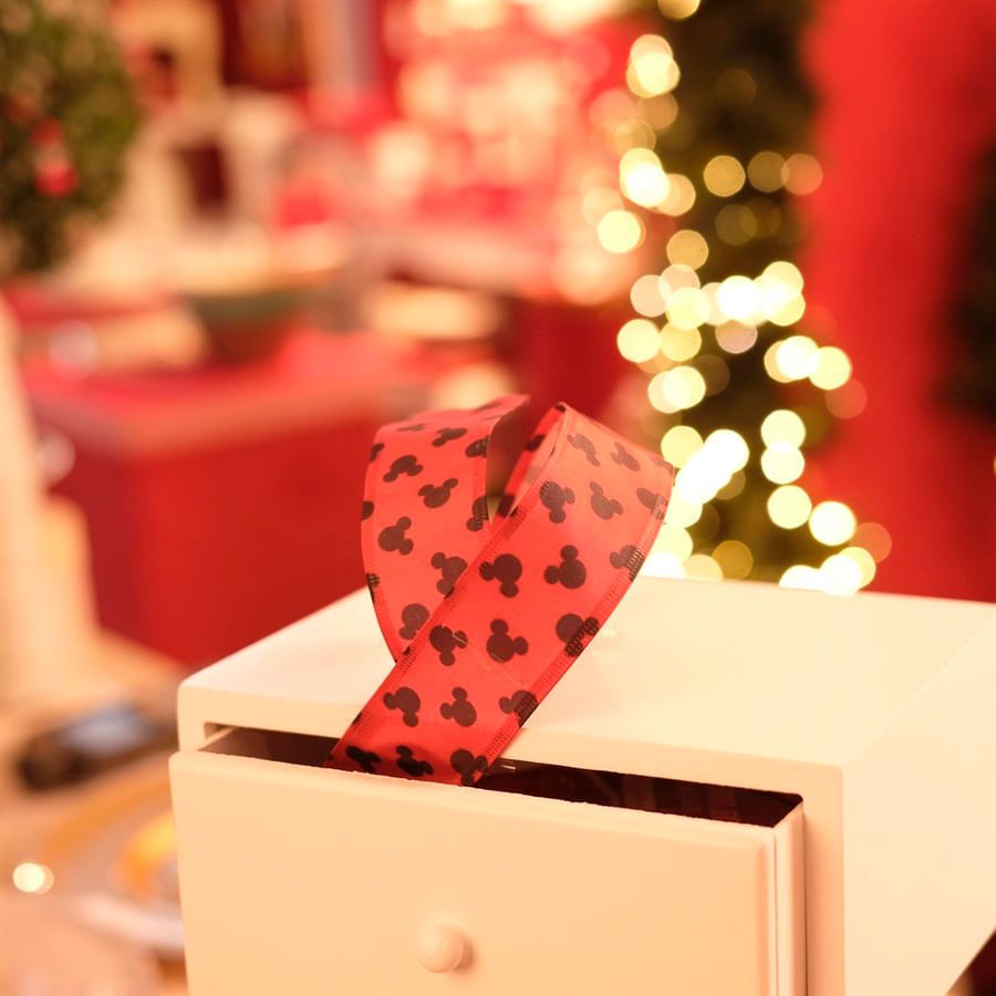 Decore sua árvore de Natal adicionando a fita Disney Mickey aos enfeites.